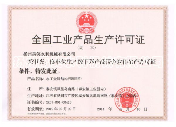 扬州禹笑水利机械有限公司座落于文化积淀深厚,风景秀丽的古城扬州。本公司产品主要产品有:卷扬式启闭机、螺杆式启闭机、液压启闭机、钢(铸铁)闸门、龙头闸门、拍门、拦污栅、清污机螺旋压榨机、皮带输送机等一系列产品,规格齐全。 近年来,公司凭借精干的技术力量自行研制出了螺旋线控启闭机、前摆式螺杆启闭机,并获得了中华人民共和国国家知识产权局颁发的专利证书,丰富了用于钢坝闸门一启闭机的种类,并得到了广泛的推广利用,在行业中取得了一致认可。 本公司产品广泛用于水利、市政、环保、治金、电力、化工、纺织、印染、养殖等行业。公司的生产能力:金属结构制作年生产量达3000多吨,各类启闭机年生产达2000多台套,各类铸造件年生产达2000多吨。是江苏省专业生产水工机械产品的规模型企业,公司有超声波探伤检测仪、...... [ 查看详情 ]
